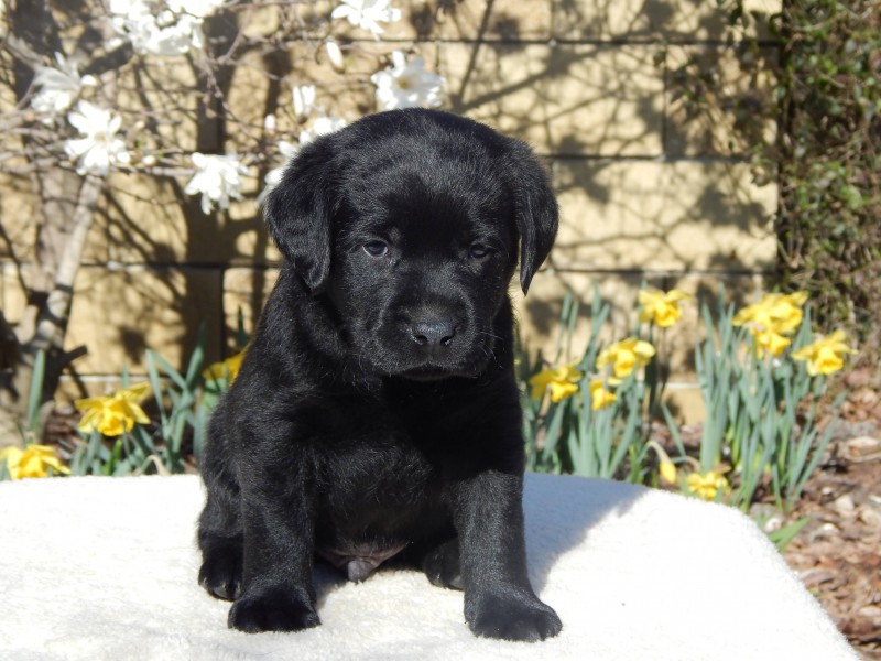 *27.2.2022 se narodilo 9 štěňátek (1 žlutá fenka, 3 černí pejsci a 5 žlutých pejsků)